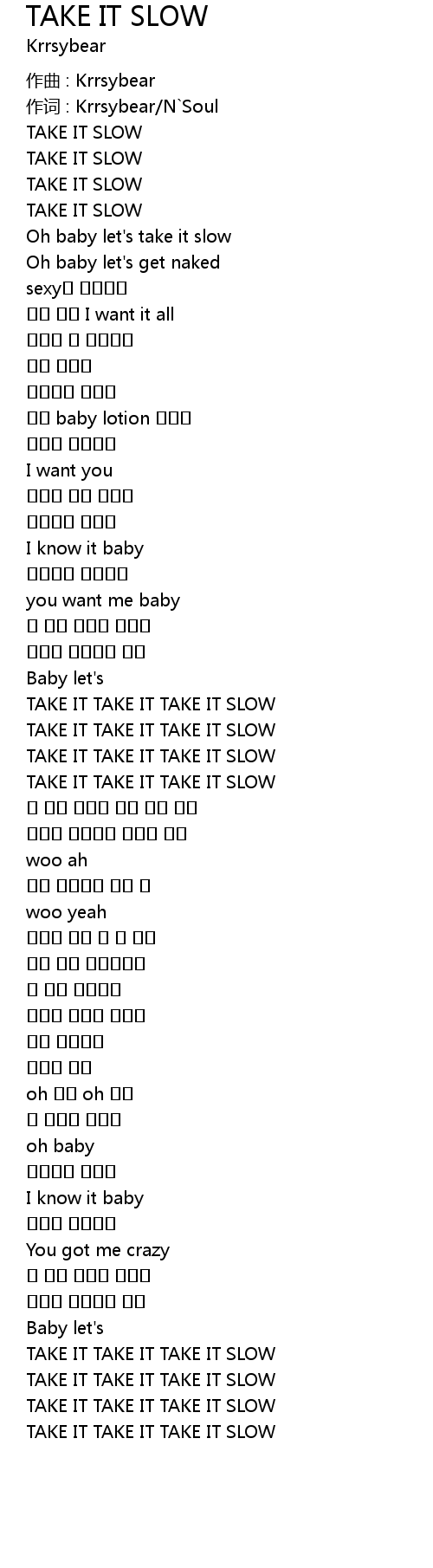 | Oh baby let's take it slow | |