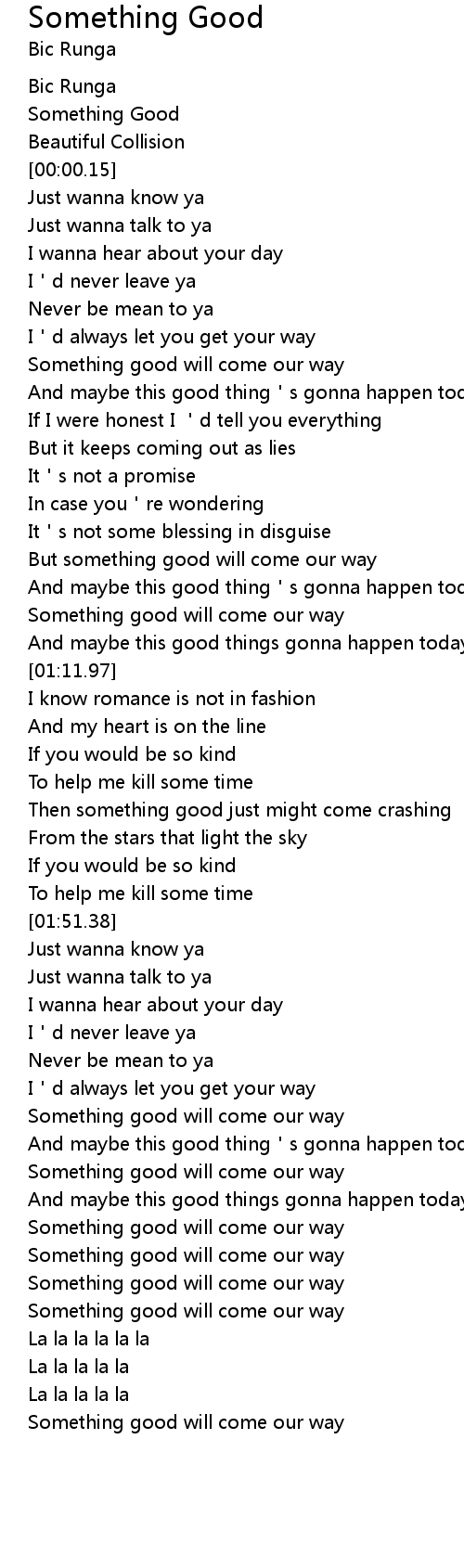 | [00:55.43] | And maybe this good thing's gonna happen today |