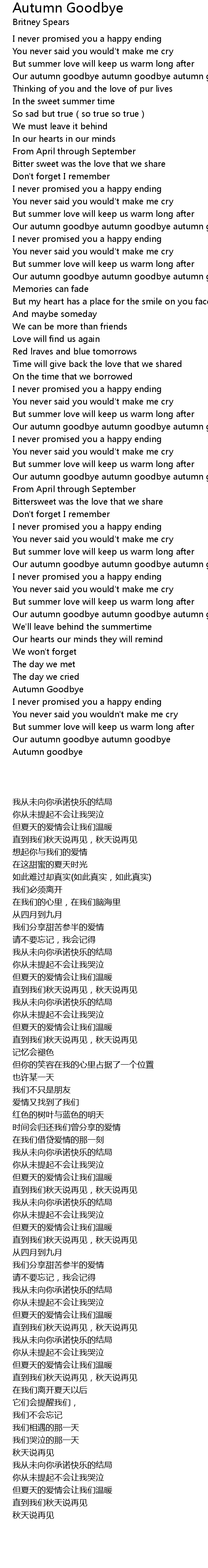 | [00:52.950] | Our autumn goodbye autumn goodbye autumn goodbye |