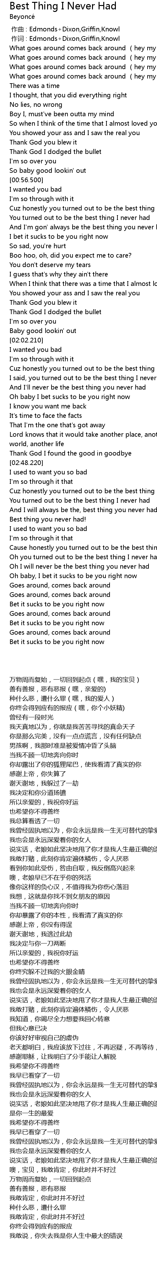 | [02:23.110] | And I' ll never be the best thing you never had |