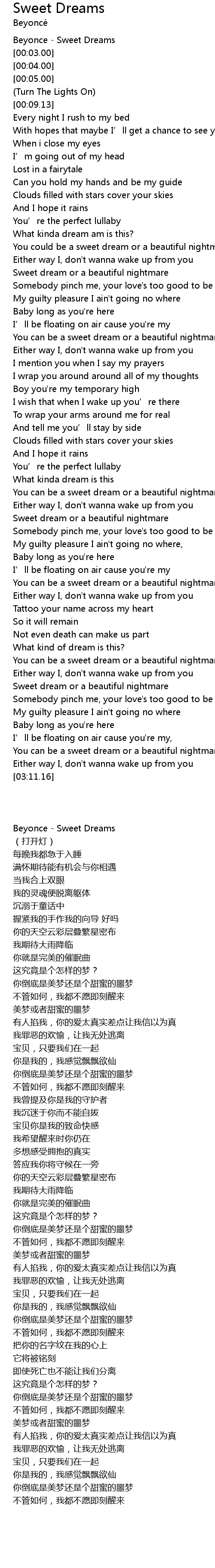 | [00:02.00] | Beyonce Sweet Dreams |