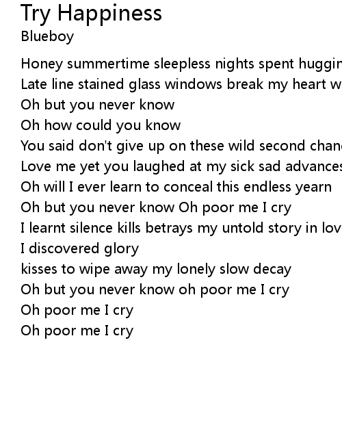 Oh but you never know oh poor me I cry |
