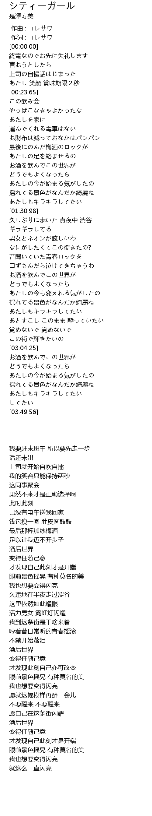 | [01:44.70] | 男女とネオンが眩しいわ |
