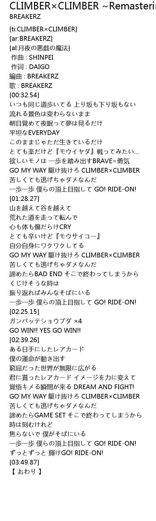 | [03:08.31] | GO MY WAY 駆け抜けろ CLIMBER×CLIMBER |