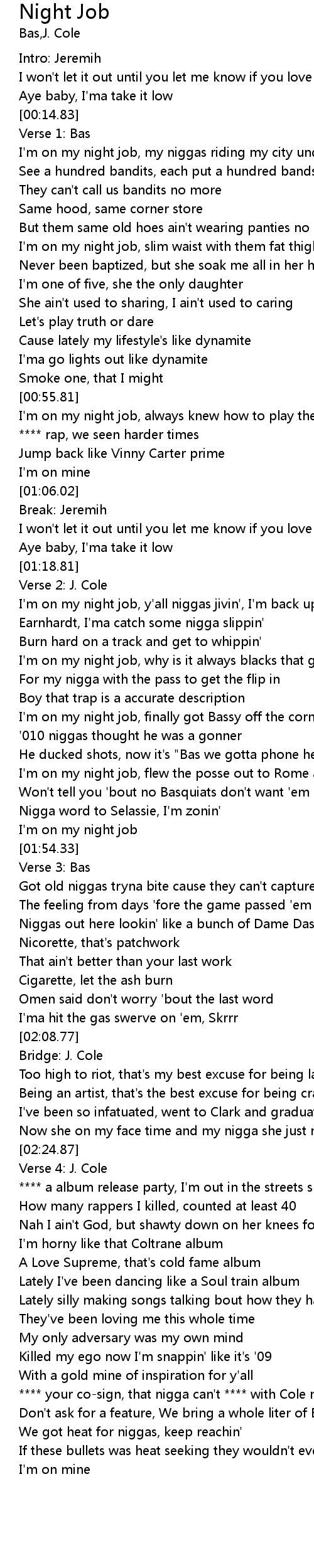 | [01:35.98] | I'm on my night job, finally got Bassy off the corner |