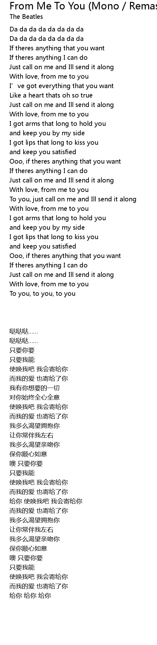 | [01:42.33] | With love, from me to you |