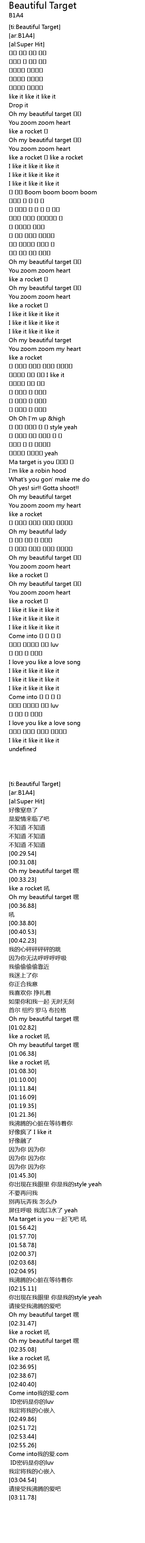 | [00:31.47] | Oh my beautiful target 헤이 |