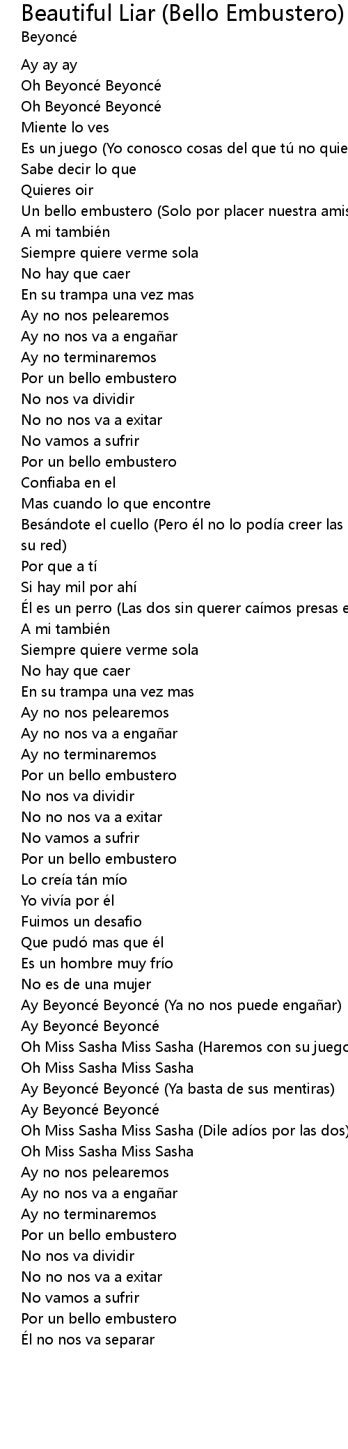 | [02:32.05] | Ay Beyoncé Beyoncé (Ya basta de sus mentiras) |