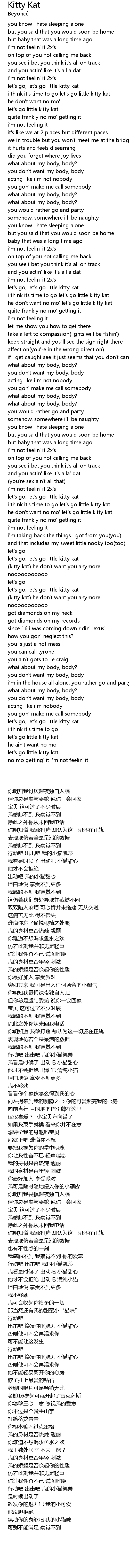| [01:33.340] | he don' t want no mo' let' s go little kitty kat |