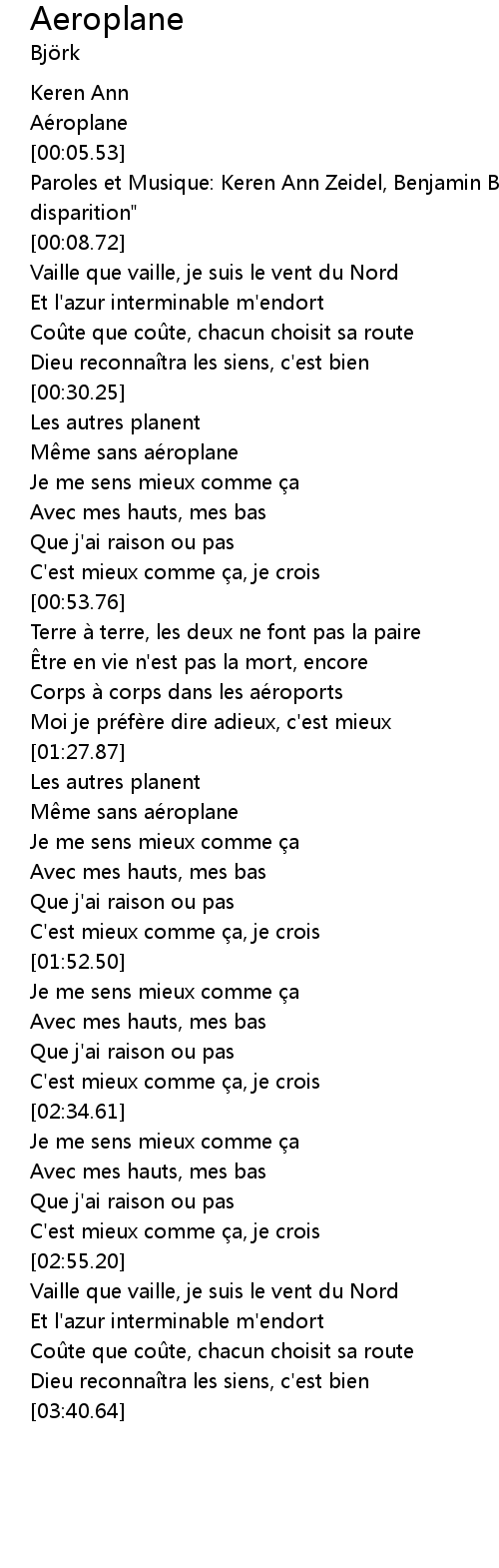 | [00:03.31] | Aéroplane |