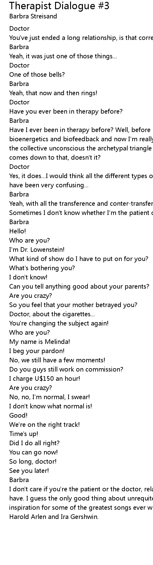 Yeah, with all the transference and conter-transference. |