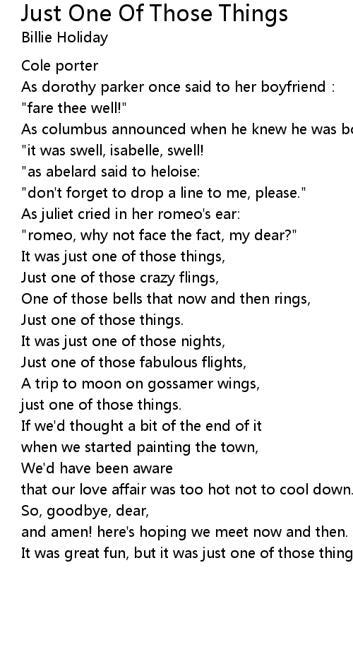 | Song | Just One Of Those Things |