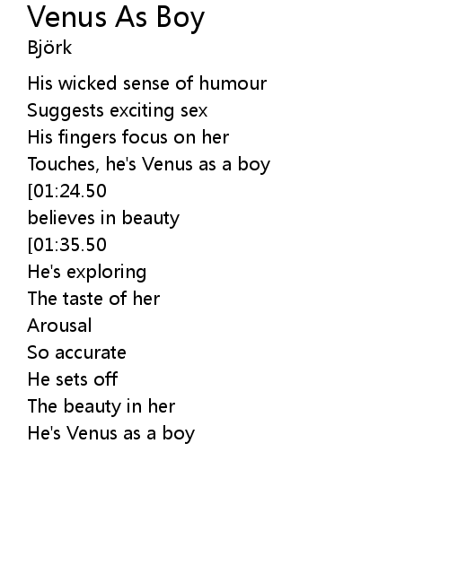 | [01:21.50][01:35.50][03:00.50][03:14.50] | He's Venus as a boy |