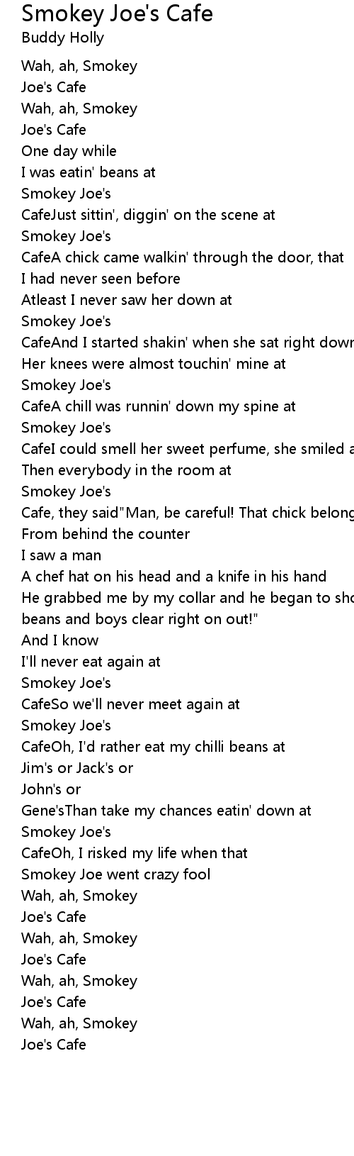 Cafe, they said"Man, be careful! That chick belongs to Smokey Joe" |
