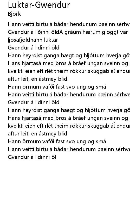 | Hans hjartasa med bros a bra ef ungan sveinn og yngismeyhann adeins sa hann kveikti eien eftirle t theim ro kkur skuggablaÍ endur minning aeskutidhann aftur leit, en a stmey blid | |