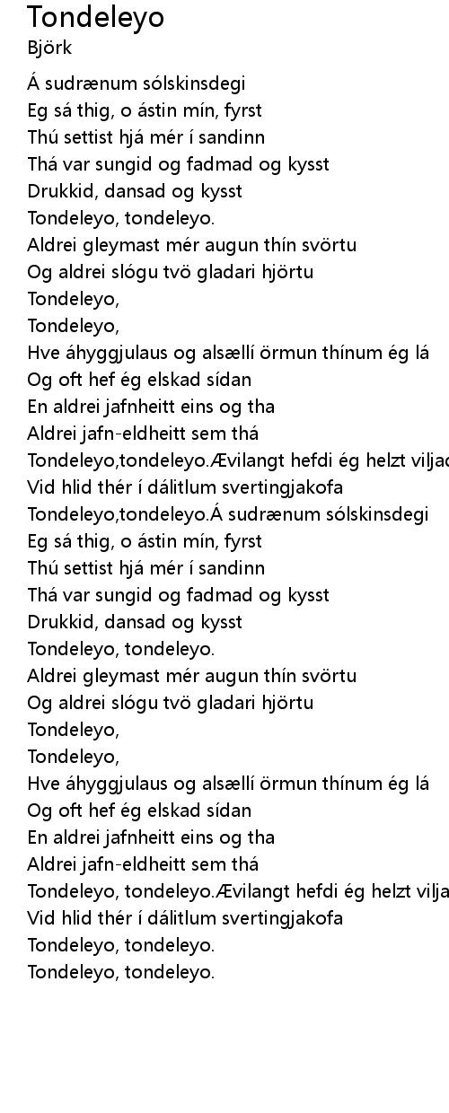 | Tondeleyo, tondeleyo. vilangt hefdi é g helzt viljad sofa | |
