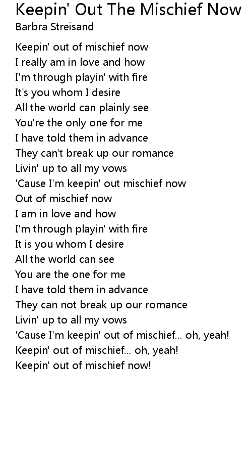 'Cause I'm keepin' out mischief now |