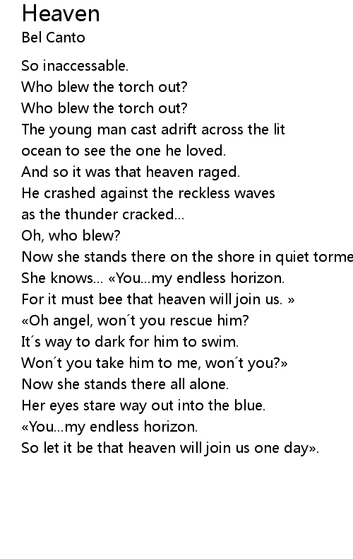 | So let it be that heaven will join us one day». |