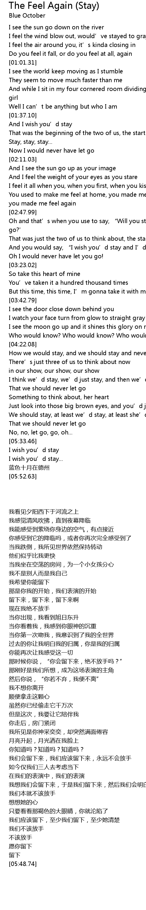 | [02:49.03] | Oh and that' s when you use to say, " Will you stay, and not let go?' |