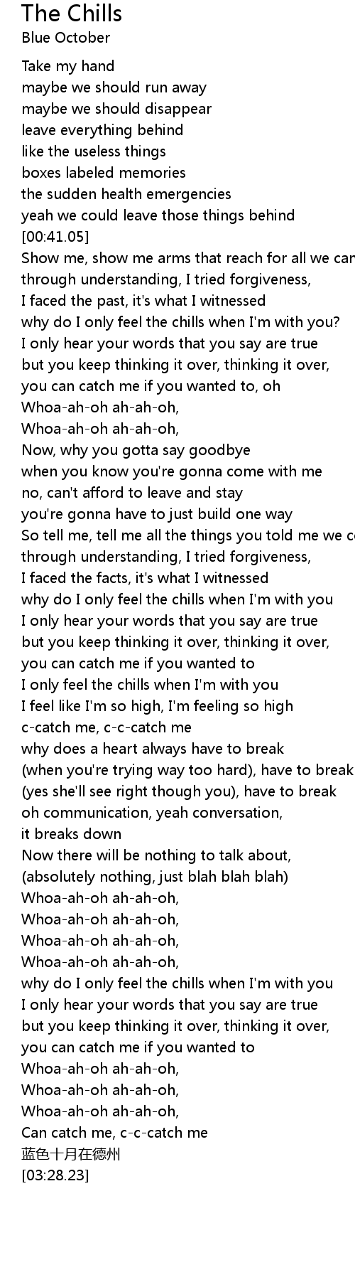 | [00:56.21] | why do I only feel the chills when I'm with you? |