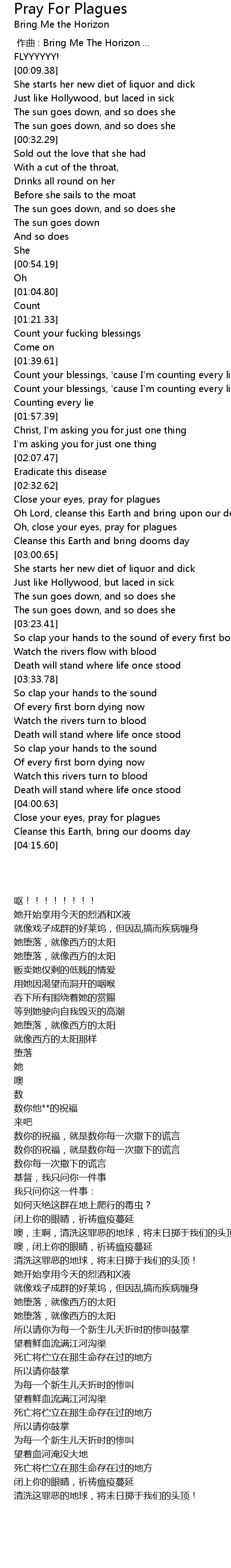 | [02:47.95] | Oh, close your eyes, pray for plagues |