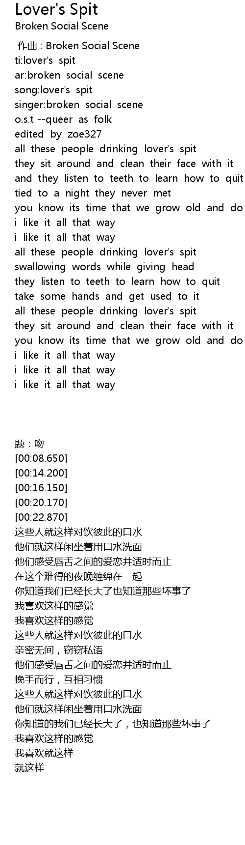 | [00:00.00] | 作曲 : Broken Social Scene |