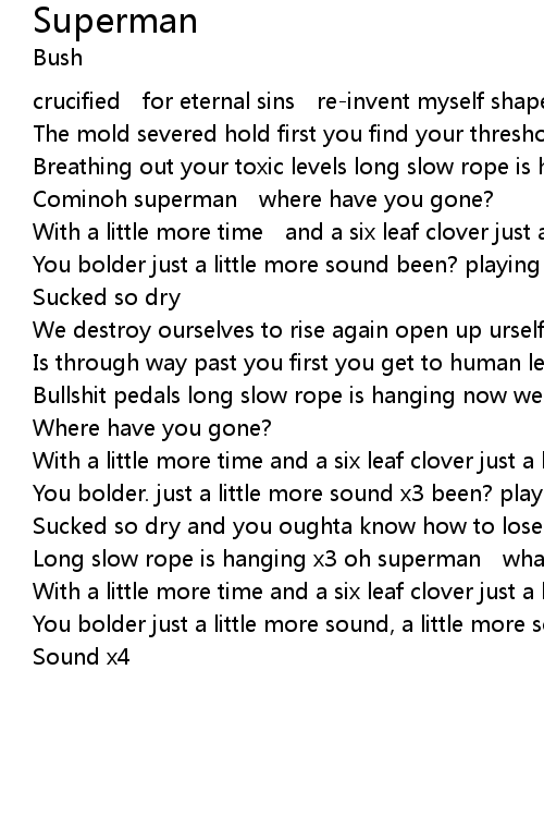 | Long slow rope is hanging x3 oh superman what have you done? | |