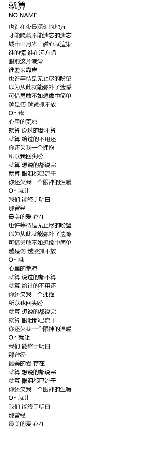 | [01:43.870] | 就算 给过的不用还 |