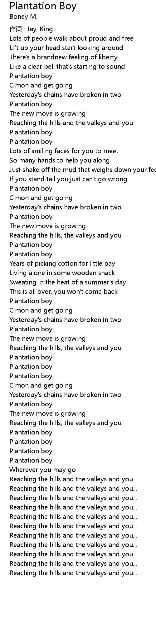 | Song | Plantation Boy |