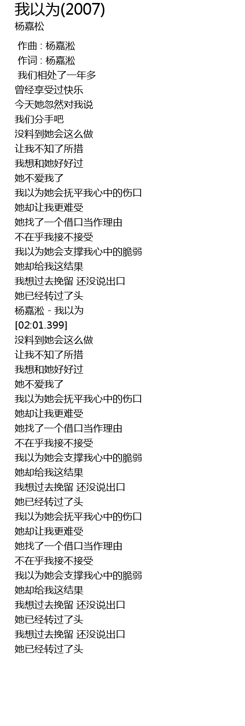 | [01:58.799] | 杨嘉淞 - 我以为 |
