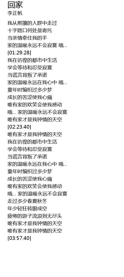 | [02:57.99] | 家的温暖永远在我心中 哦... |
