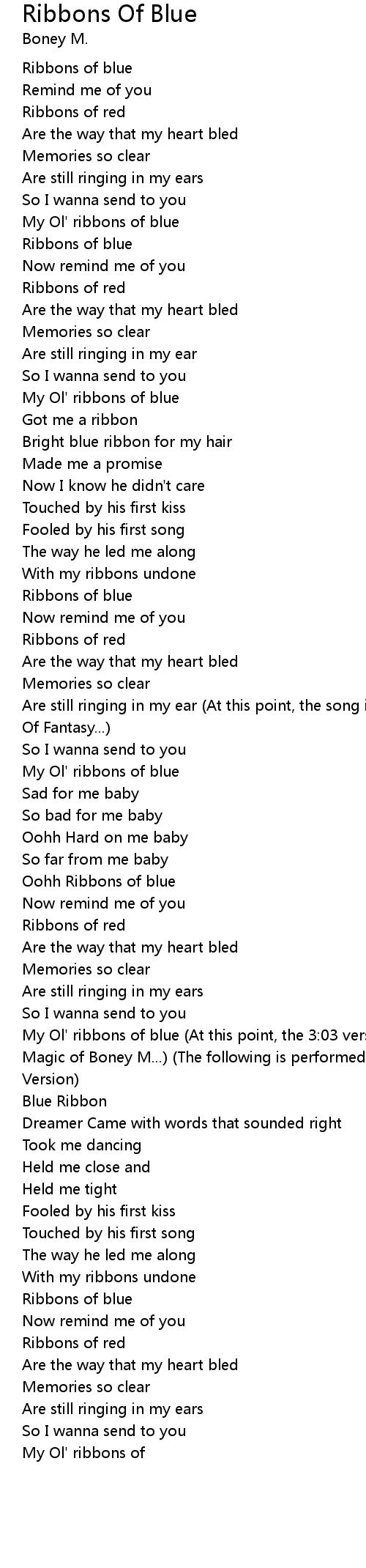 My Ol' ribbons of blue (At this point, the 3:03 version is over on the LP/CD Magic of Boney M...) (The following is performed only on the 4:22 7"-Single Version) |
