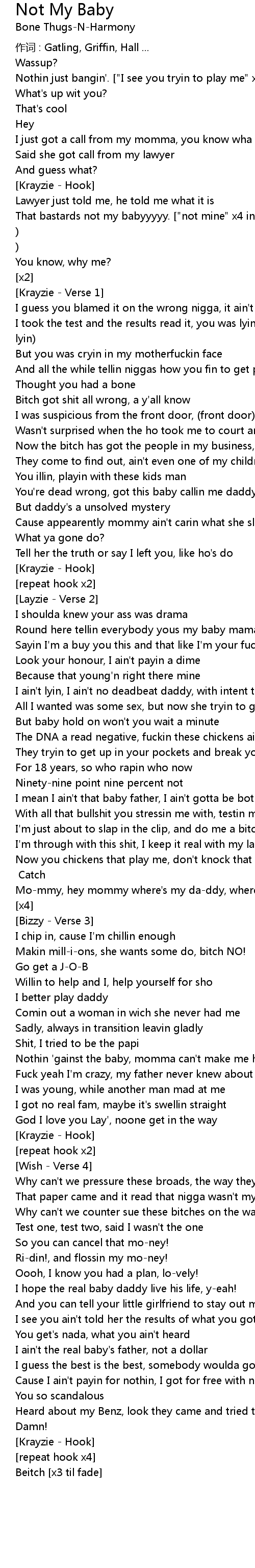 | That bastards not my babyyyyy. ["not mine" x4 in background] | |
