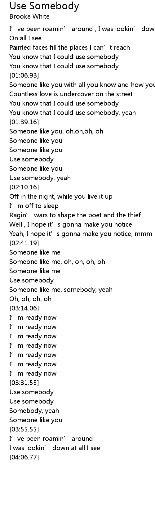 | [02:49.24] | Someone like me, oh, oh, oh, oh |