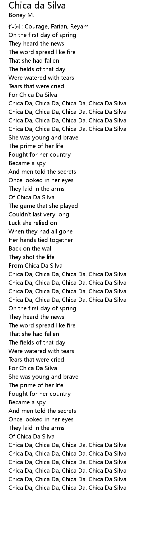 | Chica Da, Chica Da, Chica Da, Chica Da Silva |