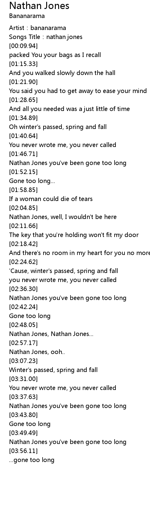 | [03:39.00] | Nathan Jones you've been gone too long |