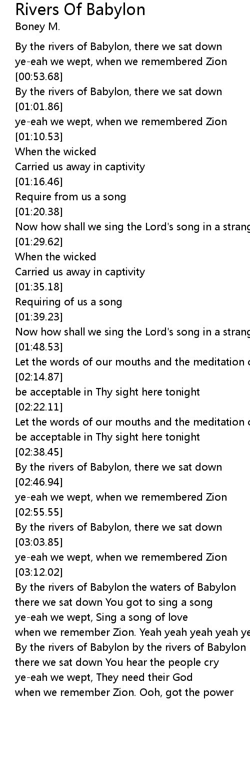 | [04:03.88] | By the rivers of Babylon by the rivers of Babylon |