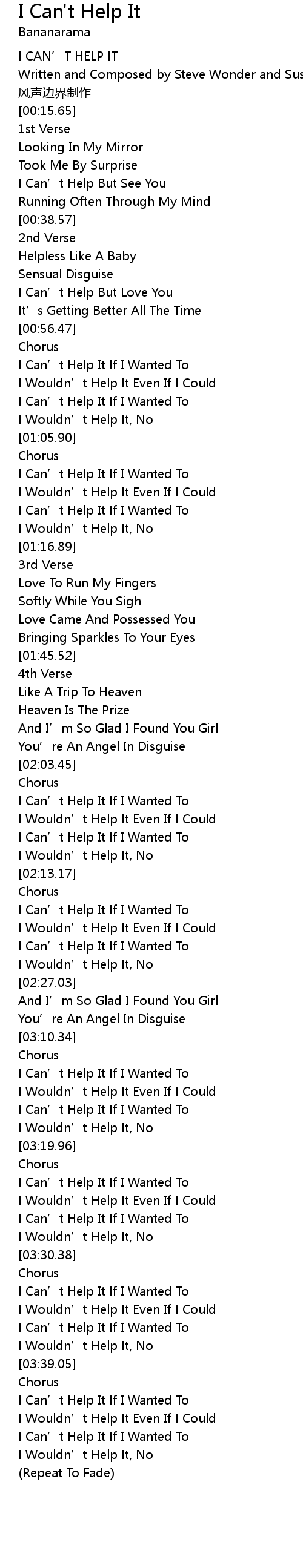| [03:15.90] | I Can' t Help It If I Wanted To |