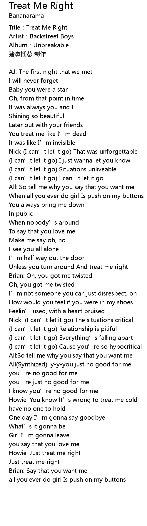 | Just treat me right | |