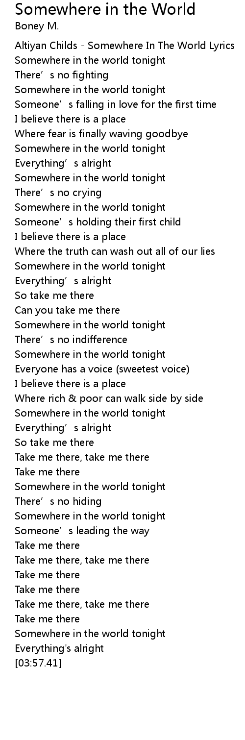 | [00:00.00] | Altiyan Childs Somewhere In The World Lyrics |