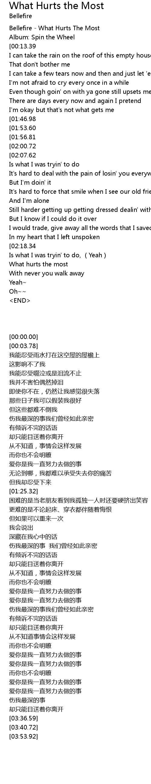 | [00:00.00] | Bellefire - What Hurts The Most |