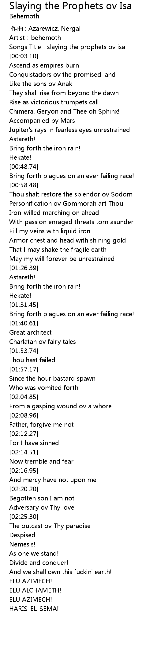 | [00:02.15] | Songs Title: slaying the prophets ov isa |