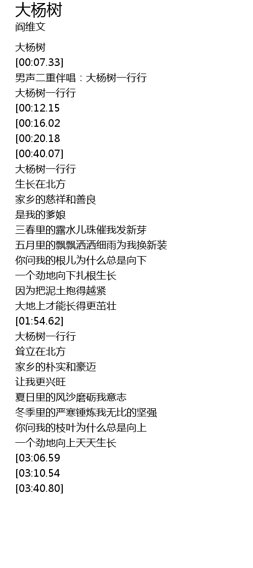 | [00:01.53] | 大杨树 |