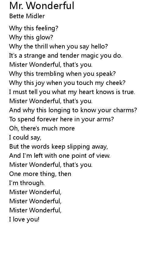 Mister Wonderful, |