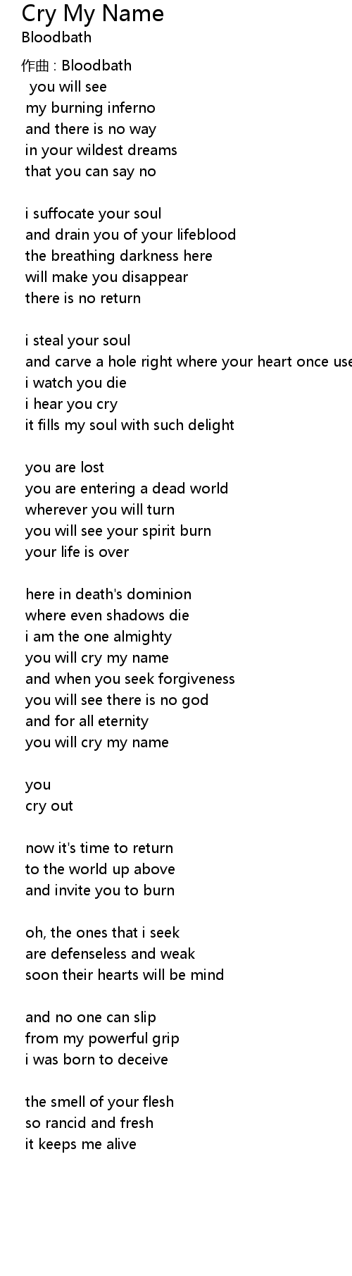 | you will cry my name | |