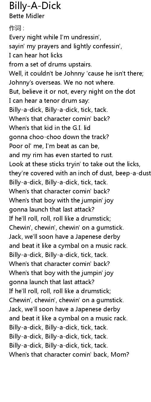 | Song | Billy-A-Dick |