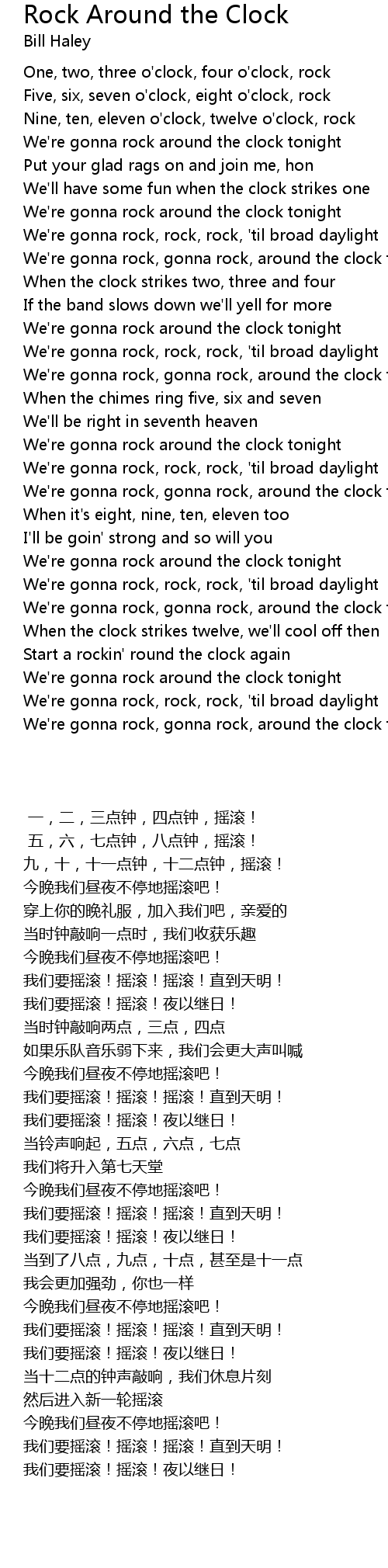 We're gonna rock around the clock tonight |
