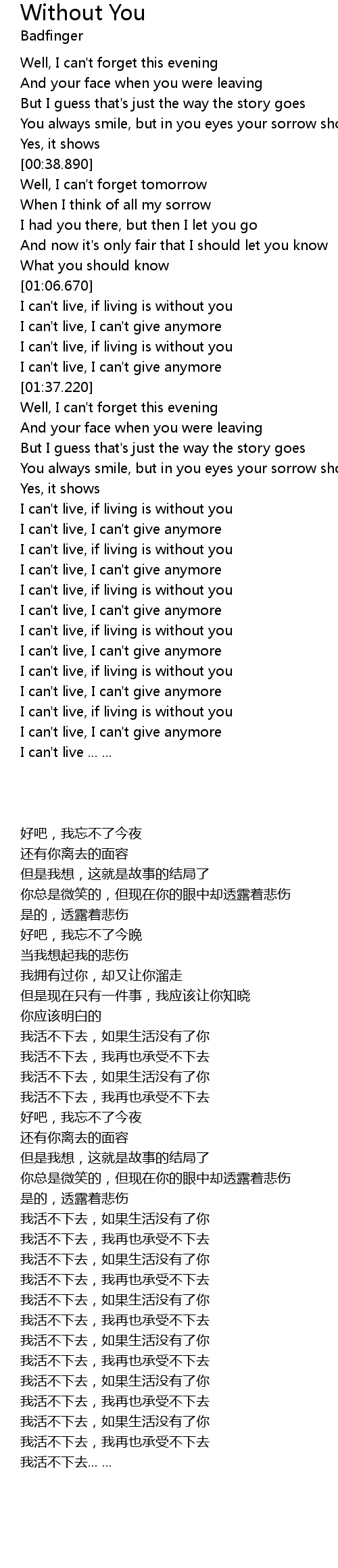 I can't live, if living is without you |
