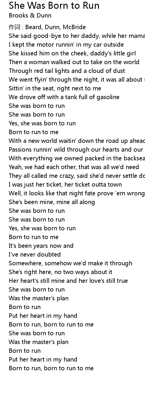 | Song | She Was Born to Run |