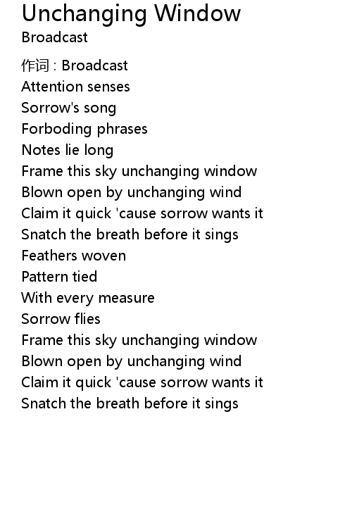 | Song | Unchanging Window |